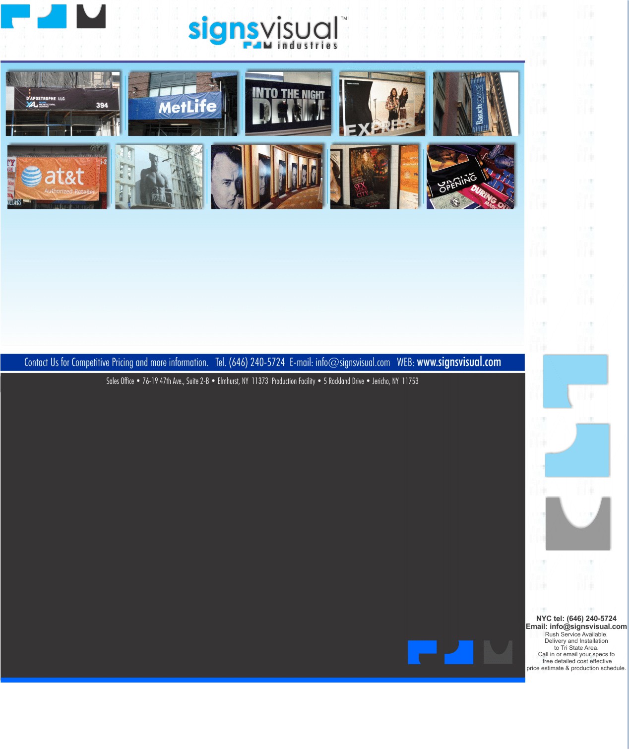 info@signsvisual.com | NYC tel: 212.945.8706 | 646.240.5724 | fax: 646.530.8752